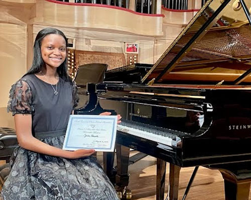 Jada has studied music for seven years and has won many awards and scholarship competitions in piano solo and concerto. What’s more, she’s an honors student aspiring to become a music therapist and has been accepted to numerous universities, receiving scholarship money from all of them.
